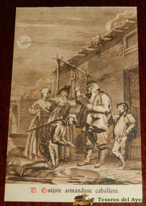 ANTIGUA POSTAL, DON QUIJOTE DE LA MANCHA DE MIGUEL DE CERVANTES SAAVEDRA, 1928, ILUSTRACION DE DON QUIJOTE ARMANDOSE CABALLERO, SIN CIRCULAR. OLD POSTCARD, DON QUIXOTE IN MIGUEL DE CERVANTES SAAVEDRA, 1928, DON QUIXOTE ILLUSTRATION KNIGHT ARMING, UNCIRCUL