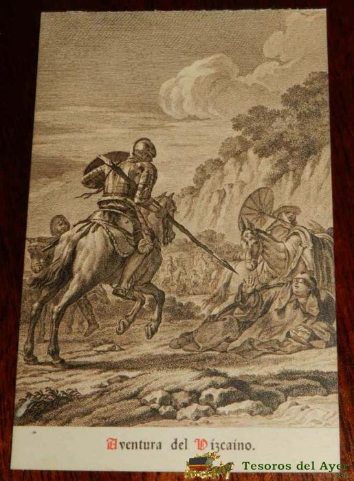 ANTIGUA POSTAL, DON QUIJOTE DE LA MANCHA DE MIGUEL DE CERVANTES SAAVEDRA, 1928, ILUSTRACION DE LA AVENTURA DEL VIZCAINO, SIN CIRCULAR. OLD POSTCARD, DON QUIXOTE IN MIGUEL DE CERVANTES SAAVEDRA, 1928, ILLUSTRATION OF THE ADVENTURE OF BISCAY, NOT CIRCULAR.