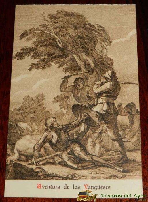 ANTIGUA POSTAL, DON QUIJOTE DE LA MANCHA DE MIGUEL DE CERVANTES SAAVEDRA, 1928, ILUSTRACION DE LA AVENTURA DE LOS YANGüESES, SIN CIRCULAR. OLD POSTCARD, DON QUIXOTE IN MIGUEL DE CERVANTES SAAVEDRA, 1928, ILLUSTRATION OF THE ADVENTURE OF THE YANGUESANS, UN