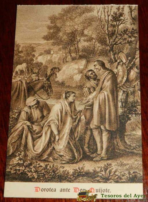 ANTIGUA POSTAL, DON QUIJOTE DE LA MANCHA DE MIGUEL DE CERVANTES SAAVEDRA, 1928, DOROTEA ANTE DON QUIJOTE, SIN CIRCULAR. OLD POSTCARD, DON QUIXOTE IN MIGUEL DE CERVANTES SAAVEDRA, 1928, TO DON QUIXOTE DOROTEA, UNCIRCULATED.