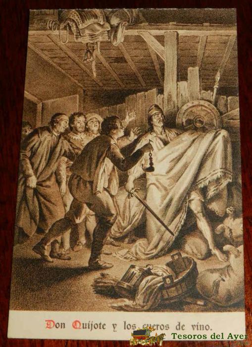 ANTIGUA POSTAL, DON QUIJOTE DE LA MANCHA DE MIGUEL DE CERVANTES SAAVEDRA, 1928, DON QUIJOTE Y LOS CUEROS DE VINO, SIN CIRCULAR. OLD POSTCARD, DON QUIXOTE IN MIGUEL DE CERVANTES SAAVEDRA, 1928, DON QUIXOTE AND THE WINESKINS, NOT CIRCULAR.