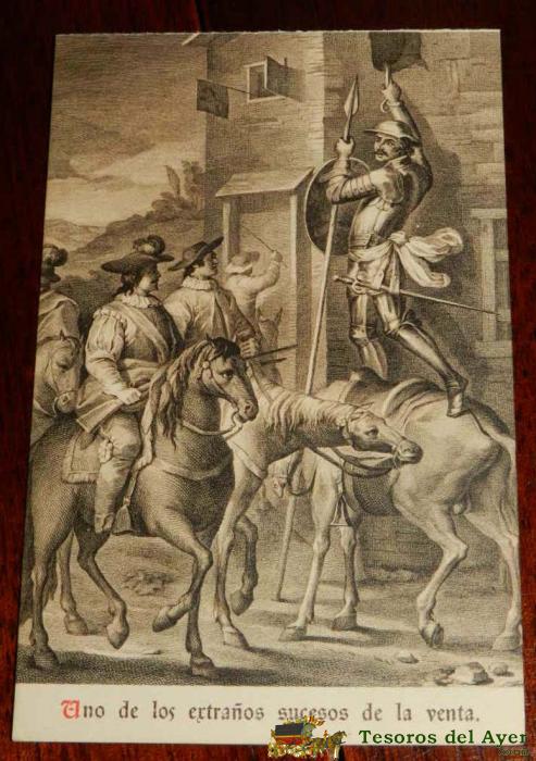 ANTIGUA POSTAL, DON QUIJOTE DE LA MANCHA DE MIGUEL DE CERVANTES SAAVEDRA, 1928, UNO DE LOS EXTRAñOS SUCESOS DE LA VENTA, SIN CIRCULAR. OLD POSTCARD, DON QUIXOTE IN MIGUEL DE CERVANTES SAAVEDRA, 1928, ONE OF THE STRANGE EVENTS OF THE SALE, UNCIRCULATED.