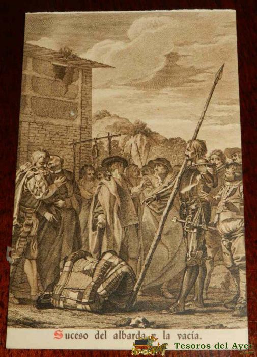 ANTIGUA POSTAL, DON QUIJOTE DE LA MANCHA DE MIGUEL DE CERVANTES SAAVEDRA, 1928, SUCESO DEL ALABARDA Y LA VACIA, SIN CIRCULAR. OLD POSTCARD, DON QUIXOTE IN MIGUEL DE CERVANTES SAAVEDRA, 1928, EVENT THE HALBERD AND EMPTY, NOT CIRCULAR.