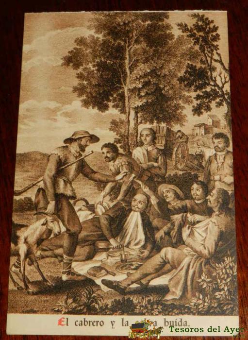 ANTIGUA POSTAL, DON QUIJOTE DE LA MANCHA DE MIGUEL DE CERVANTES SAAVEDRA, 1928, EL CABRERO Y LA CABRA HUIDA, SIN CIRCULAR. OLD POSTCARD, DON QUIXOTE IN MIGUEL DE CERVANTES SAAVEDRA, 1928, THE GOATHERD AND GOATS ESCAPE, UNCIRCULATED.