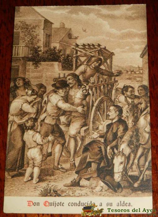 ANTIGUA POSTAL, DON QUIJOTE DE LA MANCHA DE MIGUEL DE CERVANTES SAAVEDRA, 1928, DON QUIJOTE CONDUCIDO A SU ALDEA, SIN CIRCULAR. OLD POSTCARD, DON QUIXOTE IN MIGUEL DE CERVANTES SAAVEDRA, 1928, DON QUIXOTE LED TO HIS VILLAGE, NOT CIRCULAR.