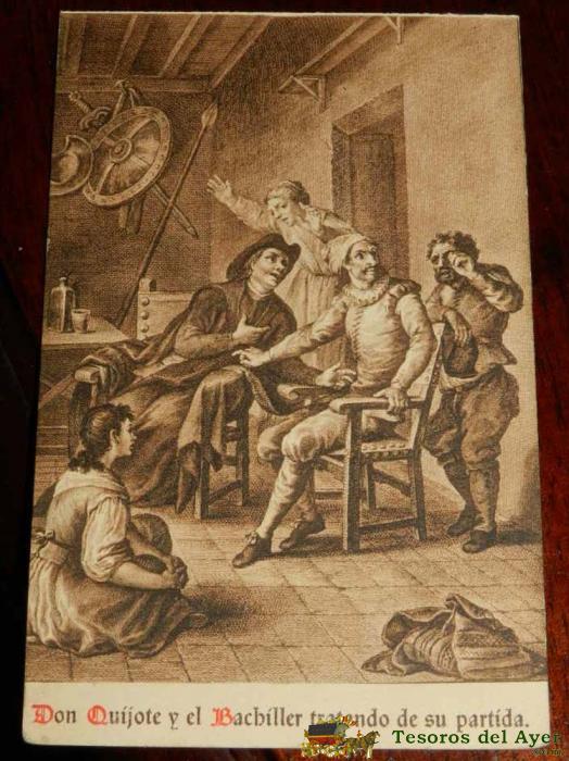 ANTIGUA POSTAL, DON QUIJOTE DE LA MANCHA DE MIGUEL DE CERVANTES SAAVEDRA, 1928, DON QUIJOTE Y EL BACHILLER TRATANDO DE SU PARTIDA, SIN CIRCULAR. OLD POSTCARD, DON QUIXOTE IN MIGUEL DE CERVANTES SAAVEDRA, 1928, DON QUIXOTE AND THE BACHELOR TRYING HIS DEPAR