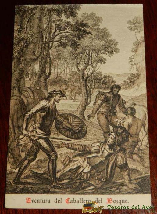 ANTIGUA POSTAL, DON QUIJOTE DE LA MANCHA DE MIGUEL DE CERVANTES SAAVEDRA, 1928, AVENTURA DEL CABALLERO DEL BOSQUE, SIN CIRCULAR. OLD POSTCARD, DON QUIXOTE IN MIGUEL DE CERVANTES SAAVEDRA, 1928, KNIGHT,S ADVENTURE IN THE FOREST, NOT CIRCULAR.
