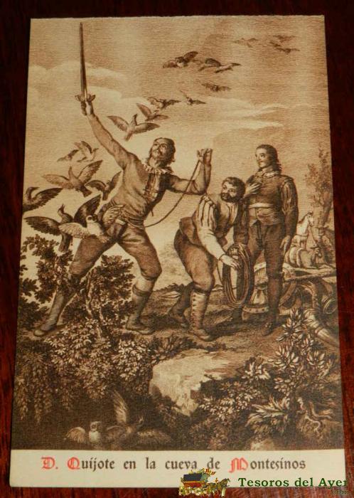 ANTIGUA POSTAL, DON QUIJOTE DE LA MANCHA DE MIGUEL DE CERVANTES SAAVEDRA, 1928, DON QUIJOTE EN LA CUEVA DE MONTESINOS, SIN CIRCULAR. OLD POSTCARD, DON QUIXOTE IN MIGUEL DE CERVANTES SAAVEDRA, 1928, DON QUIXOTE IN THE CAVE OF MONTESINOS, UNCIRCULATED.
