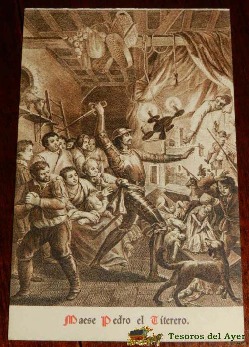 ANTIGUA POSTAL, DON QUIJOTE DE LA MANCHA DE MIGUEL DE CERVANTES SAAVEDRA, 1928, MAESE PEDRO EL TITERO, SIN CIRCULAR. OLD POSTCARD, DON QUIXOTE IN MIGUEL DE CERVANTES SAAVEDRA, 1928, MASTER PETER THE TITERO, UNCIRCULATED.