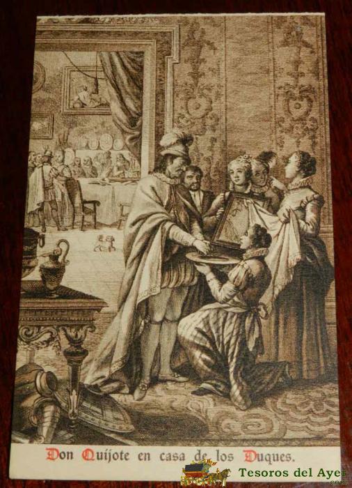 ANTIGUA POSTAL, DON QUIJOTE DE LA MANCHA DE MIGUEL DE CERVANTES SAAVEDRA, 1928, DON QUIJOTE EN CASA DE LOS DUQUES, SIN CIRCULAR. OLD POSTCARD, DON QUIXOTE IN MIGUEL DE CERVANTES SAAVEDRA, 1928, DON QUIXOTE HOME OF THE DUKES, UNCIRCULATED.