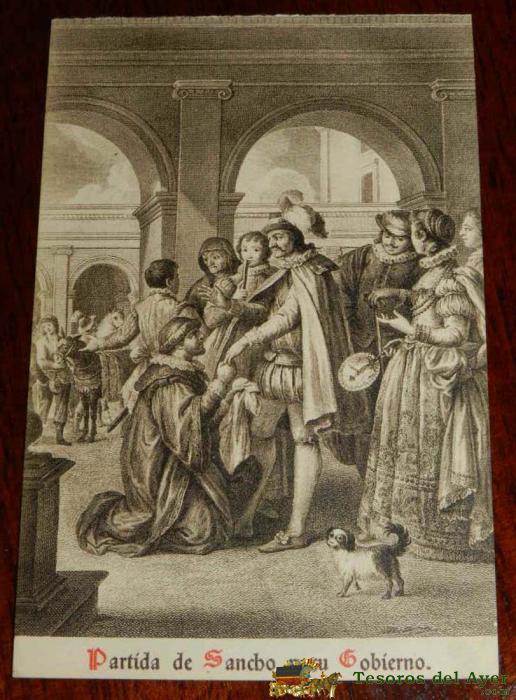 ANTIGUA POSTAL, DON QUIJOTE DE LA MANCHA DE MIGUEL DE CERVANTES SAAVEDRA, 1928, PARTIDA DE SANCHO Y SU GOBIERNO, SIN CIRCULAR. OLD POSTCARD, DON QUIXOTE IN MIGUEL DE CERVANTES SAAVEDRA, 1928, STARTING SANCHO AND THEIR GOVERNMENT, NOT CIRCULAR.