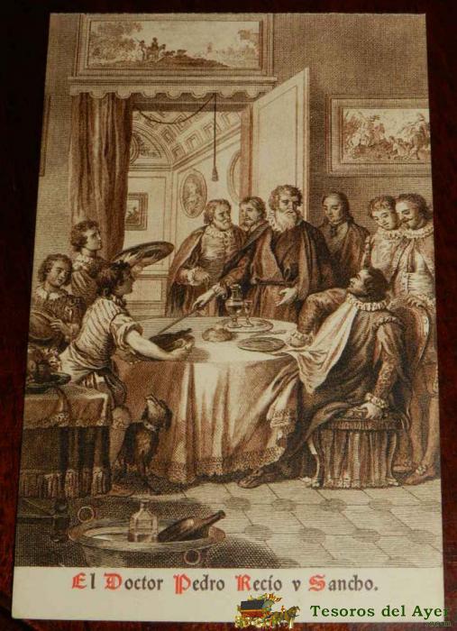 ANTIGUA POSTAL, DON QUIJOTE DE LA MANCHA DE MIGUEL DE CERVANTES SAAVEDRA, 1928, EL DOCTOR PEDRO RECIO Y SANCHO, SIN CIRCULAR. OLD POSTCARD, DON QUIXOTE IN MIGUEL DE CERVANTES SAAVEDRA, 1928, DR. PEDRO RECIO AND SANCHO, NOT CIRCULAR.