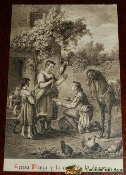 ANTIGUA POSTAL, DON QUIJOTE DE LA MANCHA DE MIGUEL DE CERVANTES SAAVEDRA, 1928, TERESA PANZA Y LA CARTA DE LA DUQUESA, SIN CIRCULAR. OLD POSTCARD, DON QUIXOTE IN MIGUEL DE CERVANTES SAAVEDRA, 1928, TERESA PANZA AND THE DUCHESS,S LETTER, NOT CIRCULAR.