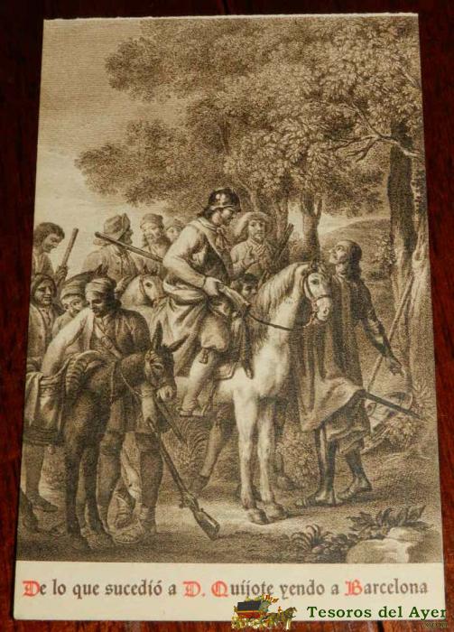 ANTIGUA POSTAL, DON QUIJOTE DE LA MANCHA DE MIGUEL DE CERVANTES SAAVEDRA, 1928, DE LO QUE SUCEDIO A DON QUIJOTE LLENDO A BARCELONA, SIN CIRCULAR. OLD POSTCARD, DON QUIXOTE IN MIGUEL DE CERVANTES SAAVEDRA, 1928, WHAT HAPPENED TO DON QUIXOTE GOING TO BARCEL
