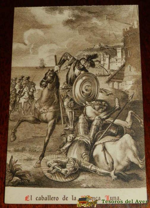 ANTIGUA POSTAL, DON QUIJOTE DE LA MANCHA DE MIGUEL DE CERVANTES SAAVEDRA, 1928, EL CABALLERO DE LA BLANCA LUNA, SIN CIRCULAR. OLD POSTCARD, DON QUIXOTE BY MIGUEL DE CERVANTES SAAVEDRA, 1928, THE KNIGHT OF THE WHITE MOON, UNCIRCULATED.