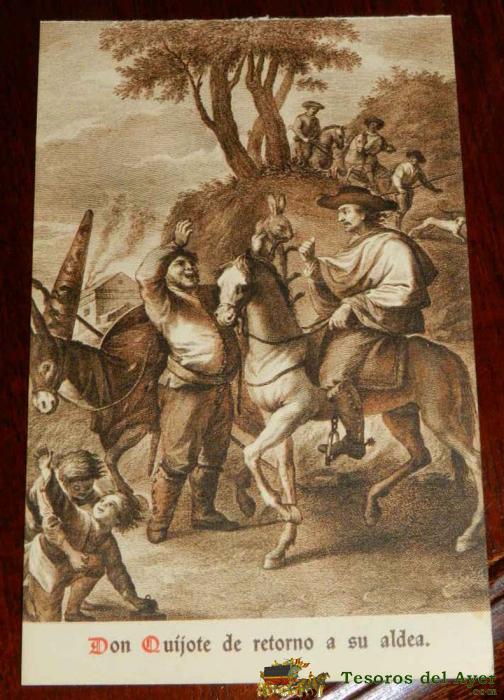 ANTIGUA POSTAL, DON QUIJOTE DE LA MANCHA DE MIGUEL DE CERVANTES SAAVEDRA, 1928, DON QUIJOTE DE RETORNO A SU ALDEA, SIN CIRCULAR. OLD POSTCARD, DON QUIXOTE IN MIGUEL DE CERVANTES SAAVEDRA, 1928, DON QUIXOTE BACK TO HIS VILLAGE, NOT CIRCULAR.