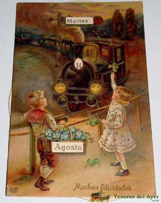 ANTIGUA POSTAL CON MECANISMO EN MOVIMIENTO - 3 RUEDAS CALENDARIO - NO CIRCULADA - ESCRITA. TIENE UN DEFECTO Y ES QUE LAS 3 RUEDECITAS ESTAN SUELTAS, AUNQUE SE PUEDEN RESTAURAR FACILMENTE.