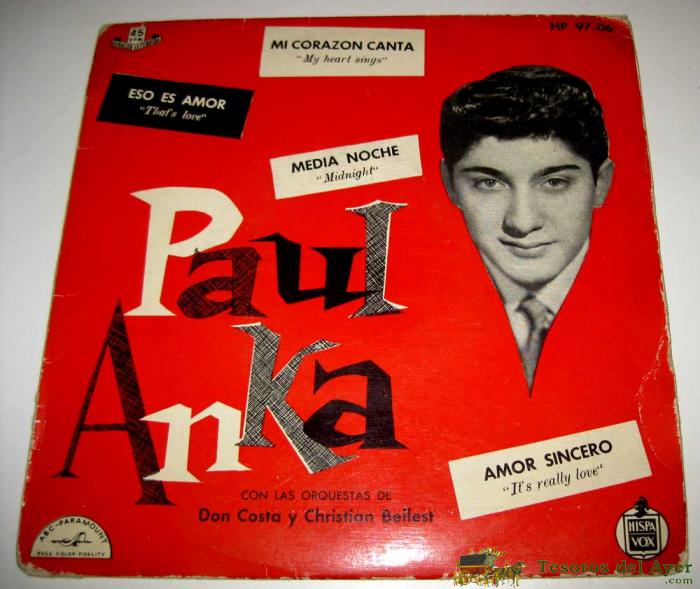 PAUL ANKA - MI CORAZON CANTA, ESO ES AMOR, MEDANOCHE, AMOR SINCERO - EP