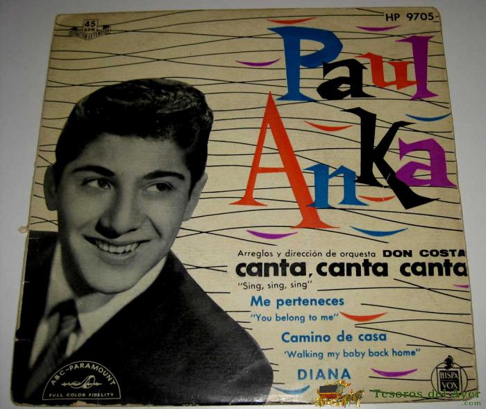 EP 45 RPM / PAUL ANKA / CANTA CANTA CANTA / ME PERTENECES/ DIANA /CAMINO DE CASA - EDITADO POR HISPAVOX