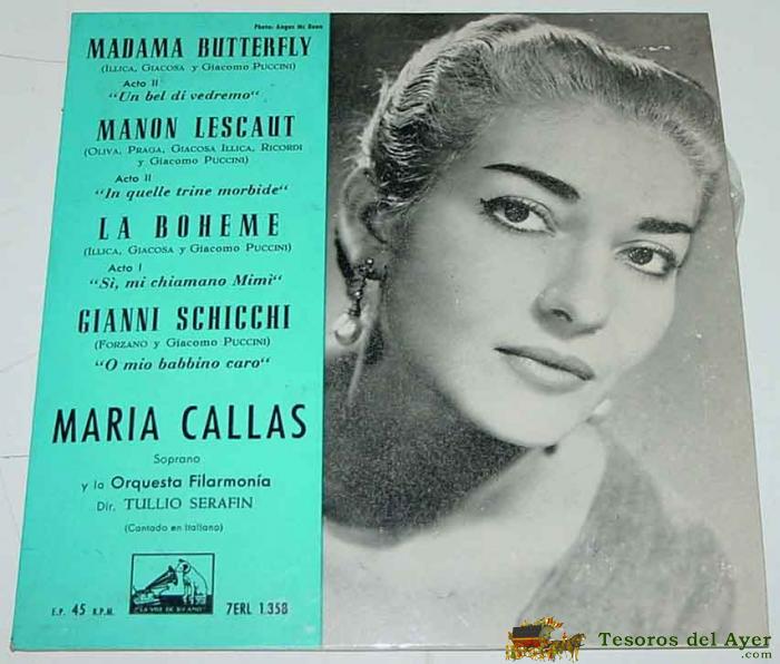VINILO EP DE MARÍA CALLAS - INTERPRETANDO MADAMA BUTTERFLY, MANON LESCAUT, LA BOHEME, GIANNI SCHICCHI - ACOMPAñADA DE LA ORQUESTA FILARMONÍA - DIR.TULLIO SERAFIN - EDITADO EN EL AñO 1959 EN 45 R.P.M.
