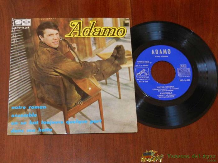 ADAMO - ANTIGUO DISCO DE VINILO - NOTRE ROMAN / ENSEMBLE / ON SE BAT TOUJEURE QUELQUE PART / DANS MA HOTTE - EPL 14357 - EP 1967 - E.P. 45 R.P.M.