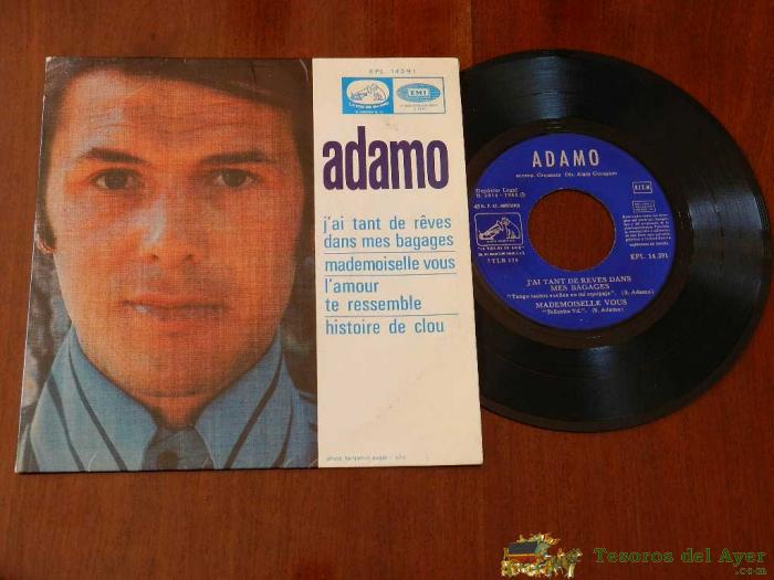 ADAMO - ANTIGUO DISCO DE VINILO - ADAMO - JAI TANT DE REVES DANS MES BAGAGES / MADEMOISELLE VOUS / HISTORIE DE CLOU - EP 1968 - E.P. 45 R.P.M.