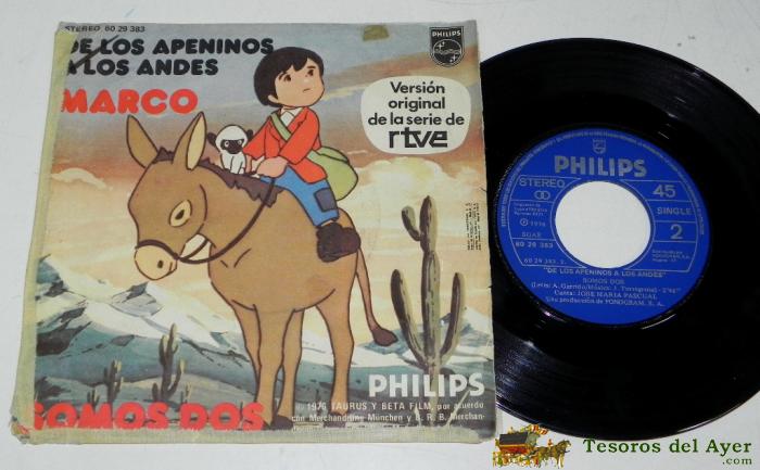 MARCO, DE LOS APENINOS A LOS ANDES, VERSION ORIGINAL DE LA SERIE DE RTVE, 1976, PHILIPS, SOMOS DOS, SINGLE