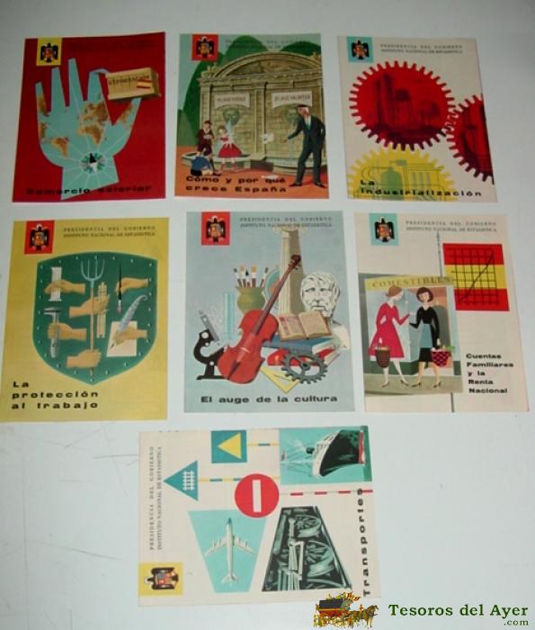 7 FOLLETOS TIPO DIPTICOS DE PUBLICIDAD DE PRESIDENCIA DEL GOBIERNO , INSTITUTO NACIONAL DE ESTADISTICA - AÑOS 50 - DEDICADOS A COMERCIO EXTERIOR, COMO Y POR QUE CRECE ESPAÑA, LA INDUSTRIALIZACION, LA PROTECCION AL TRABAJO, EL AUGE DE LA CULTURA, CUENTAS F