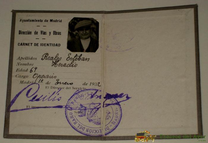 ANTIGUO CARNET DEL AYUNTAMIENTO DE MADRID - REPUBLICA - 1932 - DIRECCION DE VIAS Y OBRAS - DIRECCION DEL RAMO DE PARQUES - MIDE 9,5 X 7,5 CMS.