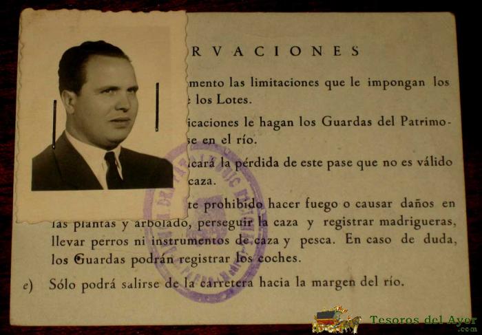 ANTIGUO CARNET DE PATRIMONIO NACIONAL - PASE O PERMISO PARA CIRCULAR POR LA CARRETERA DE MARMOTA (EL PARDO) Y MARGEN IZQUIERDO DEL RIO MANZANARES - MADRID - CON SELLO EN AZUL DE PATRIMONIO NACIONAL (EL PARDO) - MIDE 12 X 9 CMS.