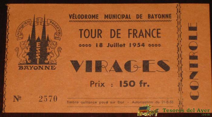 ANTIGUA ENTRADA DEL TOUR DE FRANCE 18 DE JULIO DE 1954 . VELODROME MUNICIPAL DE BAYONNE - CICLISME - CICLISMO . EXCELENTE ESTADO DE CONSERVACION
