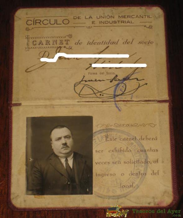 ANTIGUO CARNET DE SOCIO DEL CIRCULO DE LA UNION MERCANTIL E INDUSTRIAL DE MADRID, AÑOS 20 - MIDE 9,5 X 5,5 CMS. TAL COMO SE VE EN LAS FOTOS. LE HEMOS QUITADO EN LA FOTO EL NOMBRE POR PRIVACIDAD, PERO EN EL ORIGINAL ESTA.