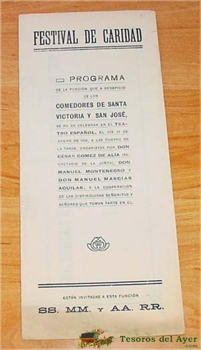 PROGRAMA DEL TEATRO ESPAÑOL. FESTIVAL DE CARIDAD, MADRID, R. VELASCO, 1916 - DESPLEGADO MIDE 22 X 28 CMS.