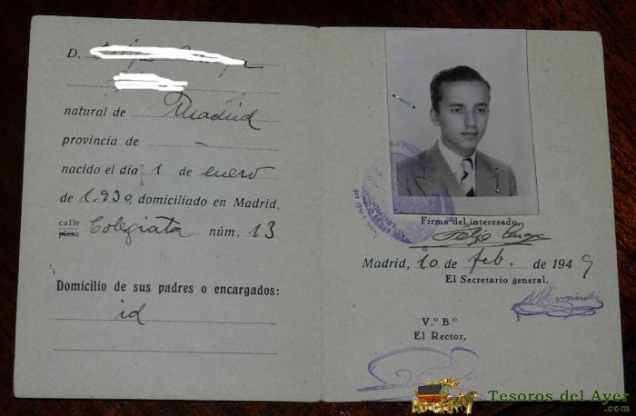 ANTIGUO CARNET O CARTA DE IDENTIDAD ESCOLAR DE LA UNIERSIDAD DE MADRID, FACULTAD DE CIENCIAS POLITICAS Y ECONOMICAS - CURSO 1948 A 1949 - MIDE DESPLEGADO 16 X 10,7 CMS.