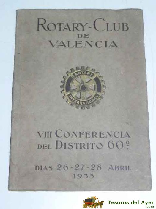 VALENCIA - 1935 - VIII CONFERENCIA DEL DISTRITO 60 - ROTARY CLUB DE VALENCIA. TIENE 80 PáGINAS . ENCICLOPEDIA GRáFICA ENVIADA A LOS ROTARIOS ANTES DEL COMIENZO DE LA CONFERENCIA. GUIA DE LA HISTORIA Y LOS MONUMENTOS , MUCHAS FOTOGRAFIAS. MIDE 24 X 17 CMS.