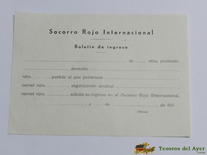 BOLETíN DE INGRESO SOCORRO ROJO INTERNACIONAL SRI, GUERRA CIVIL. MIDE 15,7 X 11 CM - DOCUMENTO ORIGINAL DE LA GUERRA CIVIL - EXCELENTE ESTADO DE CONSERVACIóN.