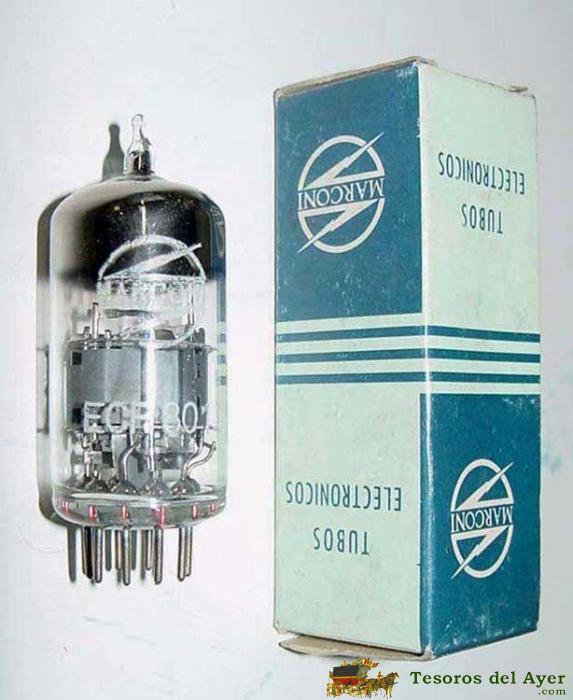ANTIGUA LAMPARA O VALVULA PARA RADIO - MARCONI ECF 801 CON SU CAJA - TAL COMO SE VE EN LA FOTO - NO LA HEMOS COMPROBADO PERO SEGURAMENTE QUE FUNCIONA, PERTENECIA A UN TALLER DONDE SE ARREGLABAN RADIOS ANTIGUAS.