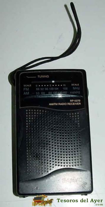 ANTIGUO APARATO DE RADIO, TRANSISTOR A PILAS - MARCA SANYO - RADIO AM Y FM - FUNCIONA, PERO NO TIENE TAPA DE LAS PILAS - MIDE 12 CMS DE LARGO X 7 DE ANCHO CMS.