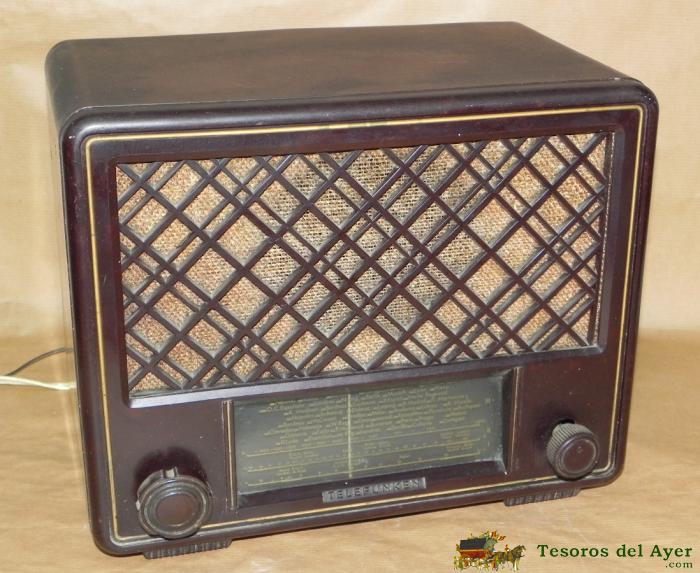 RADIO TELEFUNKEN BAKELITA MODELO CONQUISTADOR TIENE TODOS LOS BOTONES, NO LA HEMOS PROBADO POR LO QUE NO SABEMOS SIN FUNCIONA, MIDE 28,5 X 22 X 16,5 CMS. TAL COMO SE VE EN LAS FOTOS PUESTAS, BUEN ESTADO DE CONSERVACION,