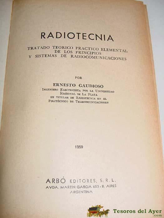 ANTIGUO LIBRO DE RADIOTECNICA - TRATRADO TEORICO PRACTICO ELEMENTAL DE LOS PRINCIPIOS Y SISTEMAS DE RADIOCOMUNICACIONES - POR ERNESTO GAUDIOSO - AÑO 1959 - ED. ARBO.