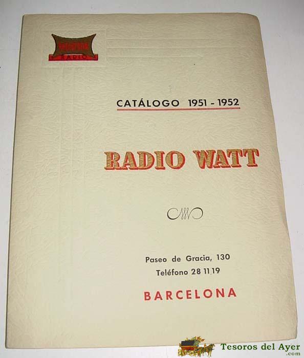 ANTIGUO CATALOGO RADIO WATT - AÑO 1951/1952 - BARCELONA - MUCHOS ESQUEMAS E ILUSTRACIONES - MIDE 38X21 CMS - 82 PAG - BOBINAS - VALVULAS - ALTAVOCES - LAMPARAS.