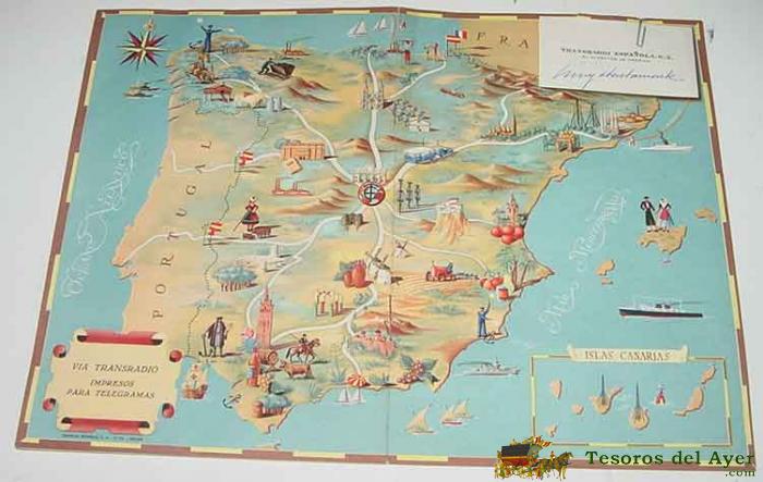 ANTIGUO CUADERNO DE VIA TRANSRADIO CON IMPRESOS PARA TELEGRAMAS - CON MAPA DE ESPAÑA - TRANSRADIO ESPAÑOLA S.A. - MIDE 33 X 24 CMS.