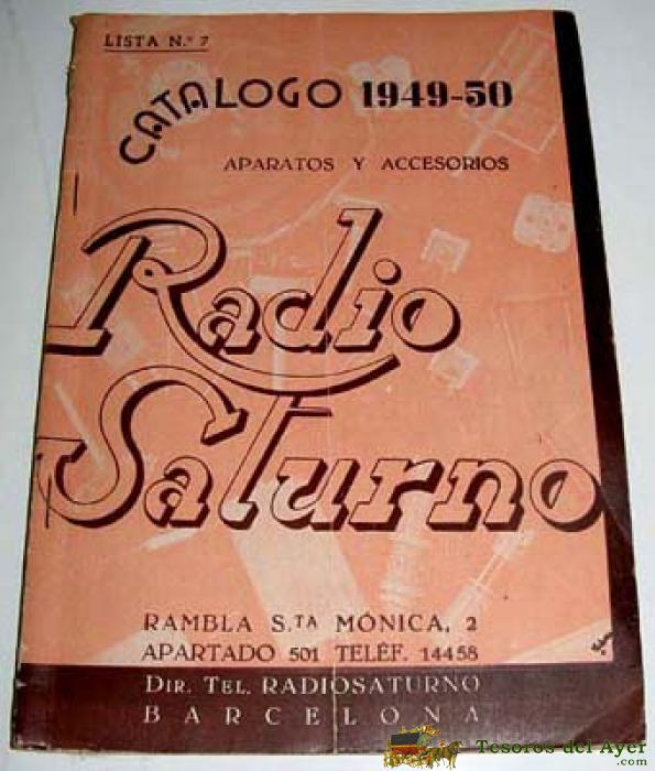 ANTIGUO CATALOGO 1949 - 1950 DE RADIOS Y ACCESORIOS . RADIO SATURNO - BARCELONA - CONSTA DE 82 PAGINAS, AGUJAS PARA GALENA, AISLADORES, APARATOS DE GALENA, BOBINAS, CASCOS Y AURICULARES, COMPROBADORES, CONDENSADORES, LAMPARAS, BOTONES PARA MANDO ETC.