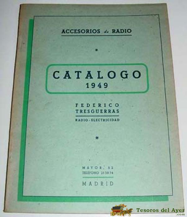 ANTIGUO CATALOGO 1949 DE RADIOS Y ACCESORIOS . ESTABLECIMIENTO FEDERICO TRESGUERRAS - MADRID - CONSTA DE 42 PAGINAS, AGUJAS PARA GALENA, AISLADORES, APARATOS DE GALENA, BOBINAS, CASCOS Y AURICULARES, COMPROBADORES, CONDENSADORES, LAMPARAS, BOTONES PARA M