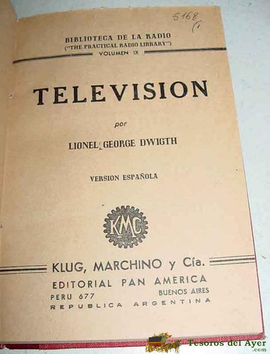 ANTIGUO LIBRO DE TELEVISION - POR LIONEL GEORGE DWIGTH - BIBLIOTECA DE LA RADIO - ED. PAN AMERICA - MIDE 18 X 12 CMS - 145 PAG - MUCHOS ESQUEMAS, MUY INTERESANTE.