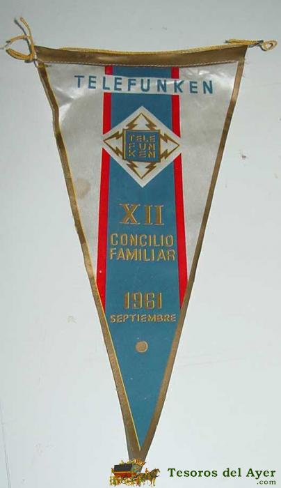 ANTIGUO BANDERIN CON PUBLICIDAD DE TELEFUNKEN - XII CONCILIO FAMILIAR - 1961 SEPTIEMBRE - MIDE 28 CMS.