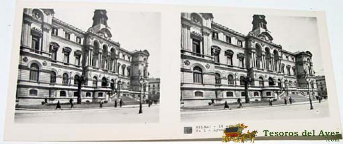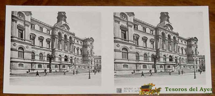 ANTIGUA FOTOGRAFIA ESTEREOSCOPICA DE BILBAO - 1ª SERIE - COLECCION NUM. 117 - ED. RELLEY - AYUNTAMIENTO - N. 1.