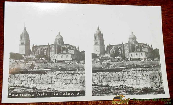 ANTIGUA POSTAL ESTEREOSCOPICA DE SALAMANCA - VISTA DE LA CATEDRAL - NO CIRCULADA.