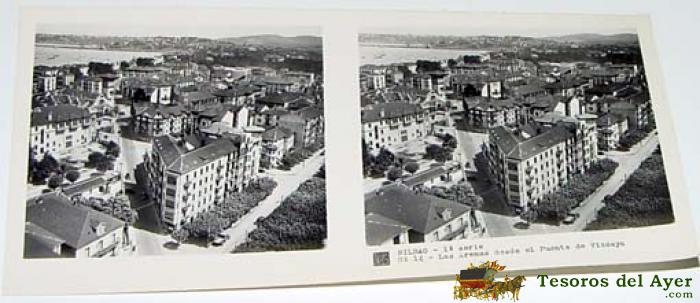 ANTIGUA FOTOGRAFIA ESTEREOSCOPICA DE BILBAO - 1ª SERIE - COLECCION NUM. 117 - ED. RELLEY - VISTA DE SANTURCE - N. 9.
