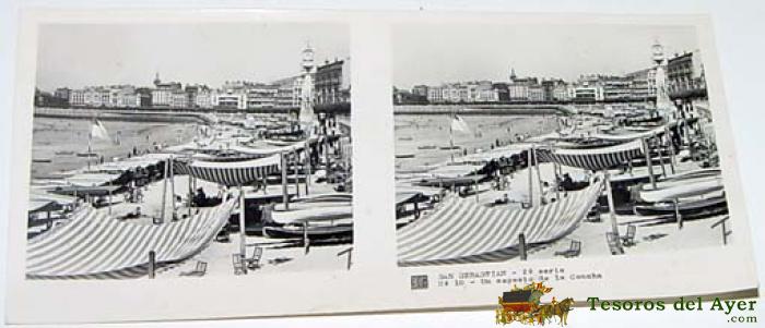 ANTIGUA FOTO ESTEREOSCOPICA DE SAN SEBASTIAN - 6 X 13 CMS - RELLEY - EL ESCANER TOMADO NO HACE JUSTICIA A LA ESTEREOSCOPIA.